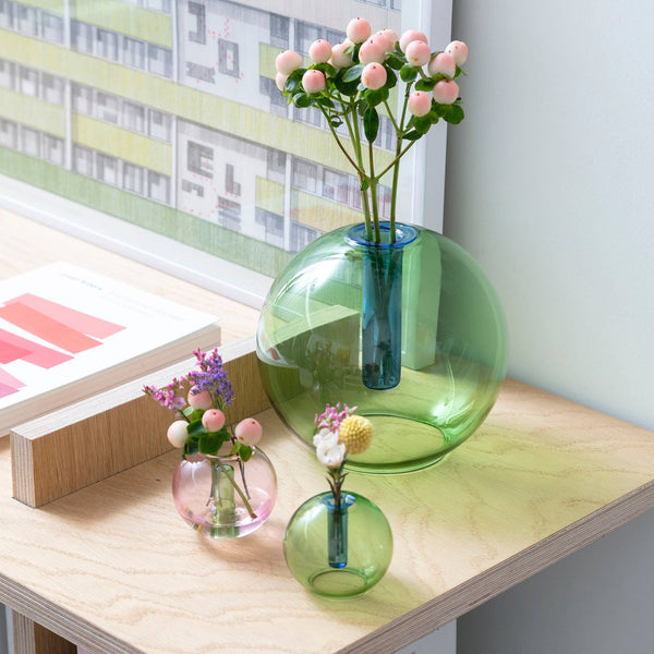 Whether filled or empty, the versatile round vase is a beautiful geometric object, sitting neatly in the palm of your hand as you choose the perfect spot for the charming tiny vessel. They look beautiful beside the bed, or decorating a whimsical tablescape.