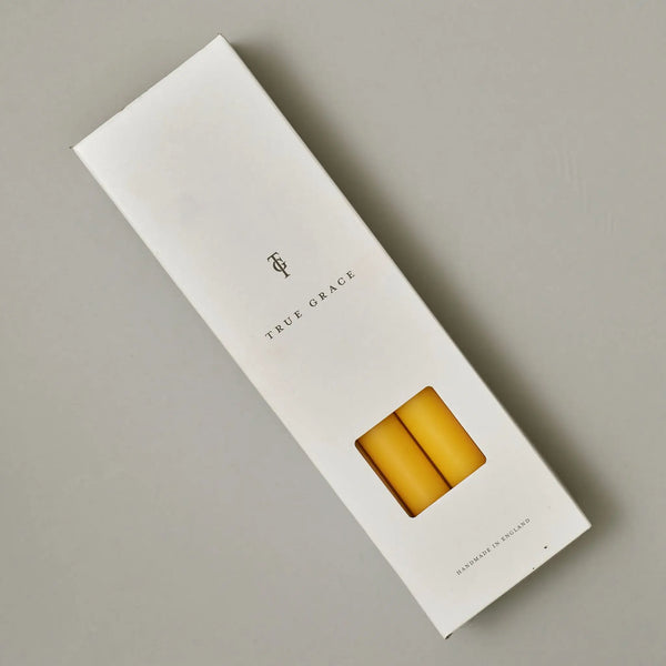 Our Yellow dining candles are made using traditional moulding machines to achieve a solid through-colour. With a long burn time of 12 hours, our dining candles are made using paraffin wax to ensure they keep their shape when lit and benefit from a centralised wick to minimize drippage. Discover a wide variety of colours all made in our Wiltshire factory. Burn Time: Up to 12 Hours Contents: 12 Paraffin Wax Taper Candles Packaging: Easily and Widely Recyclable Packaging Fill: 133g per Candle